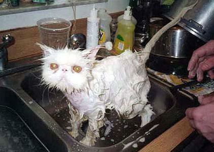 ネコやイヌを洗ってあげるのって実際は大変なようです。自分は動物を飼った事がないのですが、写真や動画を探している最中、「どのように洗うのか」という「How to」モノを色々見かけました。清潔にしてやりたい飼い主と、洗われたくない動物。なかなか難しいもんですねぇ。
