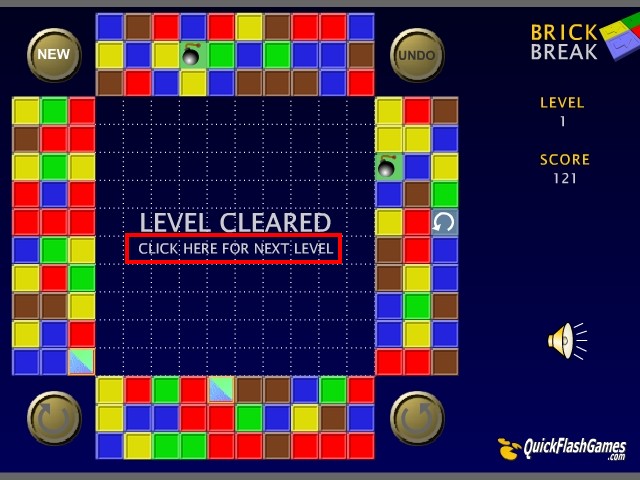 パネルを全て消すとレベルクリア。「CLICK HERE FOR NEXT LEVEL」をクリックで次のレベルに挑戦できます。