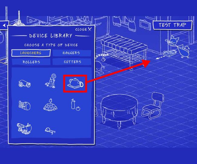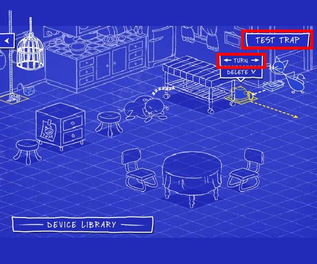 設置後向きを決定しますが、向きは矢印をクリックすることで変更できます。また、右上の「TEST TRAP」をクリックすると仕掛けが動き始めます。