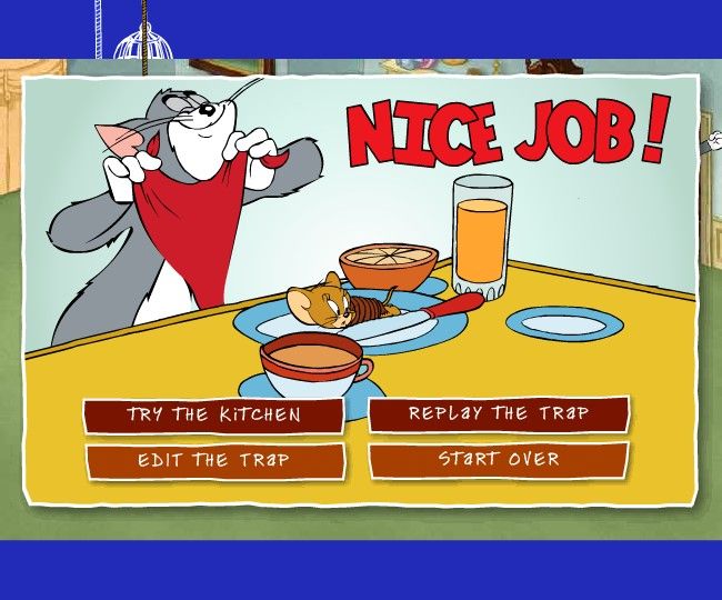 いつもジェリーを取り逃がしてしまうトムのお手伝いをするゲーム。色々な仕掛けを連携させて、ジェリーを檻の中に閉じ込めることが出来ればクリアです。ピタゴラスイッチや目覚マシーンを組み立てるようなゲームです。詳細は以下の通り。