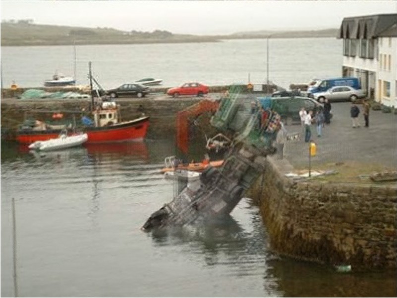 画像はクリックで拡大します岸壁の人だかりが消えて、2台目のクレーン車が海に落ちている以外、この2枚に違いは有りません。人の位置が全く変わって無いって不自然ですよね。