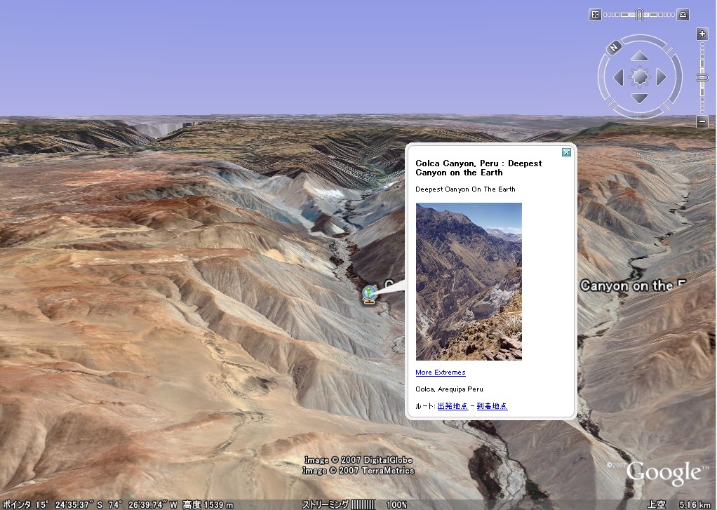 世界一深い谷、ペルーの コルカ峡谷 ↓