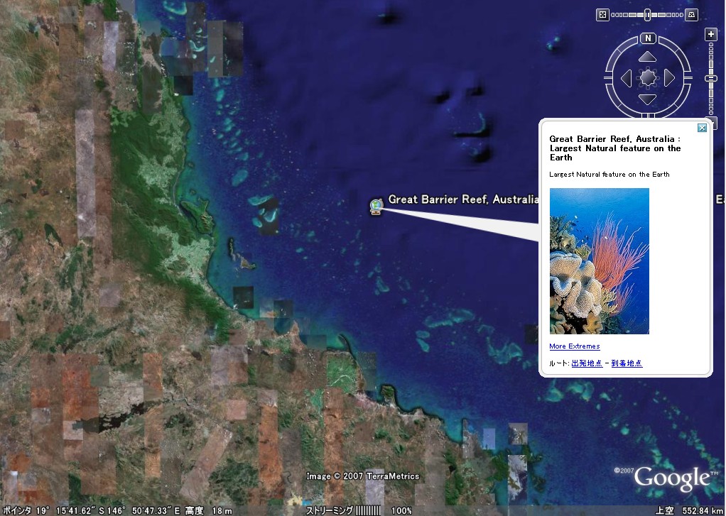 グーグルアース入手後、、上のページの「View in Google Earth」をクリックして(下の画像の赤枠内)