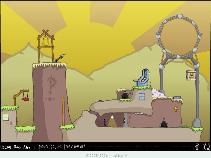 「Hapland」というゲームの紹介。ゲーム内容は黒い人形を動かして洞窟のトーチに明かりをともすというもの。遊び方は、とりあえずいろんな所をクリックしてみて下さい。棒が倒れたり、人形が動いたり、変なものが出てきたり、音が鳴ったりします。そして色々な段階を経て、最後は洞窟に人形を導いてトーチをともせばクリアとなるそうです。