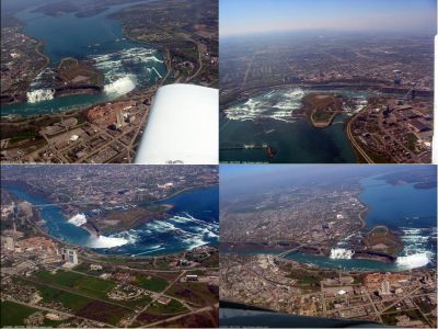 上空からナイアガラの滝を見るとどう見えるか…。って、えっ!ナイアガラの滝ってこんな所にあるの?って感じです。もっと大自然の中にあるのかと思っていました…。