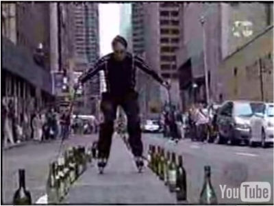 空き瓶を並べ、その間を走り抜けていくと聞き覚えのある曲が流れてきます。