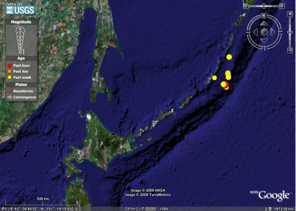 本日(06年11月15日)、8時半ごろ北海道に津波警報、