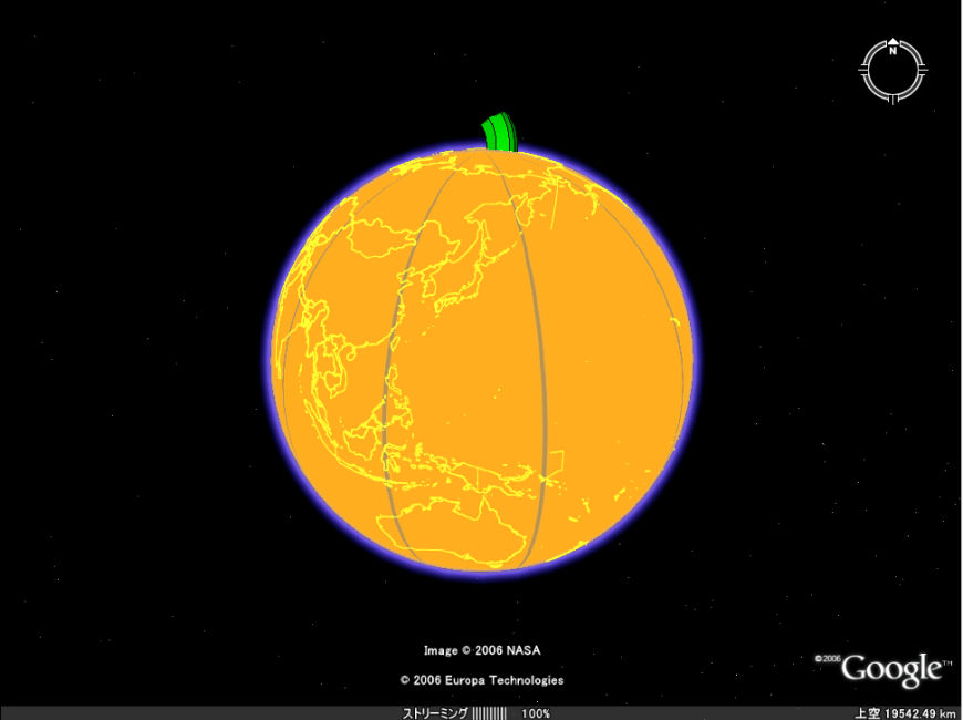 ちなみに、Google Earth のカボチャはGoogle Earth が必要。インストールについては07年2月18日の記事を参考にしてください。また、カボチャを表示したい方は下のページの、本文5行目の「here is the result」をクリック。ファイルを保存して、Google Earth で開いてください。